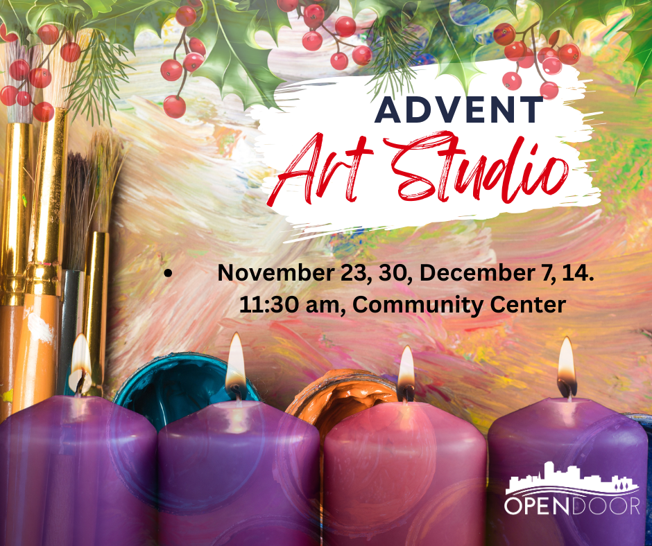 Art Studio is coming back for Advent, November 23, 30 and December 7, 14. Join us for a time of worship through art on Sundays at 11:30 am in the Community Center.